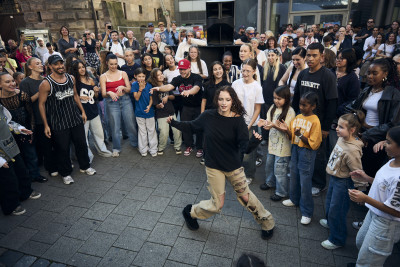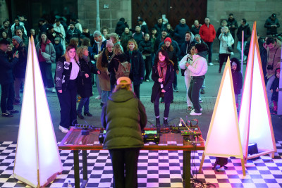 Im Laufe des Projekts von September 2024 bis Mai 2025 wird das Kleid des Gerüstturms von Textilkünstler Raul Walch mehrmals umgestaltet. Auf das erste Jeanskleid folgte eines aus High-Tech-Vlies. Überall in der Welt wird sie zum Schutz der abschmelzenden Gletscher eingesetzt, in Nürnberg ist sie Projektionsfolie für neue Ideen und weist gleichzeitig darauf hin, dass Grundlage allen zukünftigen Lebens die Natur ist und dass diese geschützt werden muss. Die dritte Bekleidung des Turms wird langsam aus verschiedenen wiederverwendeten Stoffen wachsen und in einer gemeinsamen Aktion Anfang April finalisiert. Eine künstlerische Transformation von urbanen Strukturen und die Auseinandersetzung mit unseren alltäglich konsumierten Materialien steht dabei im Vordergrund.