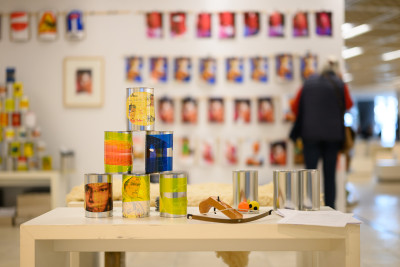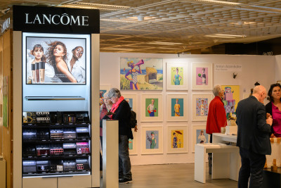 Die Galerie Slow Art zeigt Kunst neben alter Werbung des ehemaligen Kaufhofs bei der Galerie Kaufhof am Wochenende vom 4. bis 6. April. Foto: Steffen Kirschner